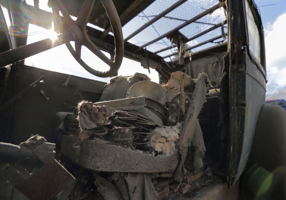 Найденный ретро-кар не на ходу, местами видна ржавчина, слезла краска, а в салоне нет половины компонентов. Тем не менее, как для столетнего авто, состояние у него хорошее. К тому же, двухдверка наверняка подлежит восстановлению.