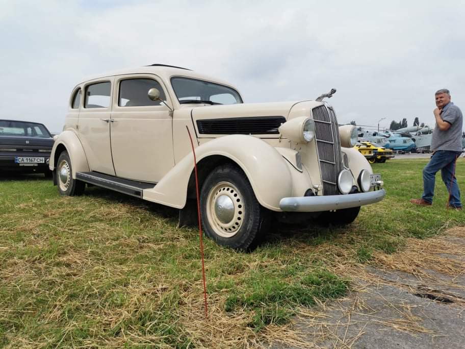 На улицах послевоенного Киева можно было видеть и большое количество легковых автомобилей, завезенных правдами и неправдами из Западной Европы. В числе их были и солидные американские машины, в том числе марки Dodge. На фестивале внимание публике привлек один такой американец – модели 1935 года, который впервые в истории марки получил входящие тогда в моду в США обтекаемые формы. А наверху радиатора красовалась эффектная декоративная фигурка в вине барана. Рядный 6-цилиндровый двигатель рабочий объемом 3,5 л развивал у этих моделей до 80 – 85 л. с.