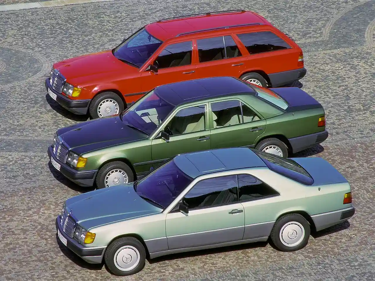 Машина пропонувалася з різними типами кузовів: седан, універсал (Т-серії), купе та кабріолет. Вражала своєю різноманітністю й лінійка силових агрегатів – від чотири-до восьмициліндрових. Так, на Паризькому автосалоні 199 року дебютувала модель 500E, оснащена 326-сильним двигуном V8. А в 1993 році з'явився E60 AMG - один із перших тюнінгових авто даної марки, занесений в офіційний продуктовий каталог Mercedes-Benz.