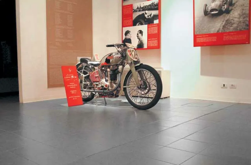 В экспозиции Galleria Ferrari есть и мотоцикл, хотя доподлинно известно, что Коммендаторе их не строил. Зато в 30-е Scuderia «грешила» и мотогонками, причем ее цвета защищали такие звезды, как Тацио Нуволари и Альберто Аскари. Доведенный руками механиков конюшни этот одноцилиндровый 500-кубовый Bianchi Freccia Azzura развивал 40 л. с. – недостижимый и сегодня результат для некоторых мотоциклов!