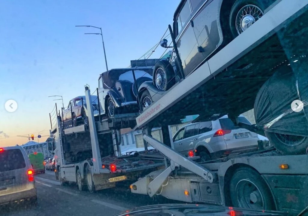 На днях пользователь Instagram @seven_force_kiev выложил на своей странице снимки автовоза. Он перевозит несколько редких автомобилей. На автовозе виднеются BMW 503, Bentley 4½ Litre и особый Mercedes-Benz. Если цена на первый и второй автомобили варьируется от 100 до 400 тысяч долларов, то последний обойдется как минимум в полмиллиона долларов. Суммарная стоимость машин составляет 2-2,5 миллиона долларов.
