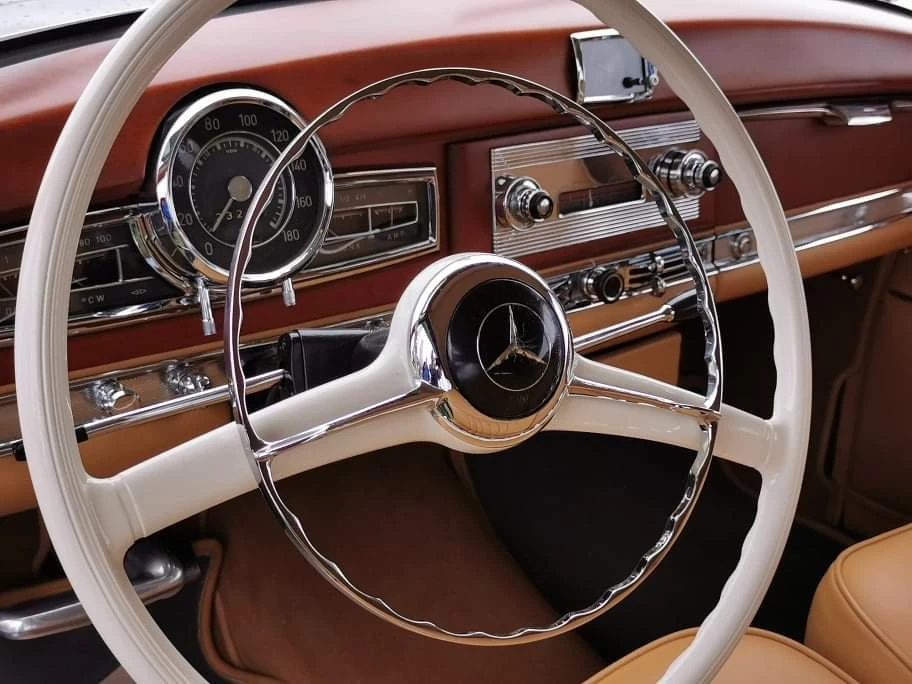 На OldCarLand представлена модернизированная версия, выпускаемая с 1954 года. Она получила вакуумный усилитель тормозов и двигатель увеличенной мощности – со 115 до 125 л. с. Особенностью всех «мерседесов» этой серии является также независимая подвеска всех колес.