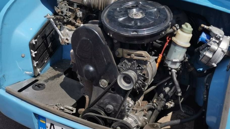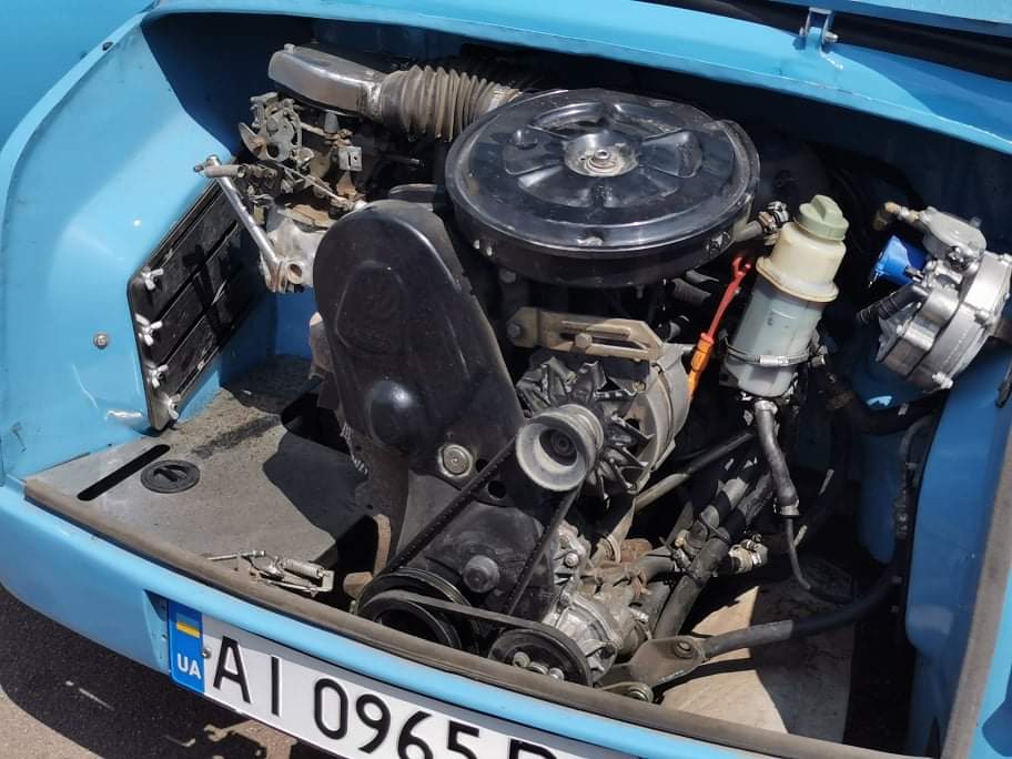 Это, например, 965-й с двигателем Volkswagen 1,8 л (90 л. с.). Здесь уже водяное охлаждения, а потому спереди в багажнике установлен радиатор. Более того, хозяин поставил ГУР от 124-го Mercedes, а заднюю подвеску – от «мыльницы» ЗАЗ-966.