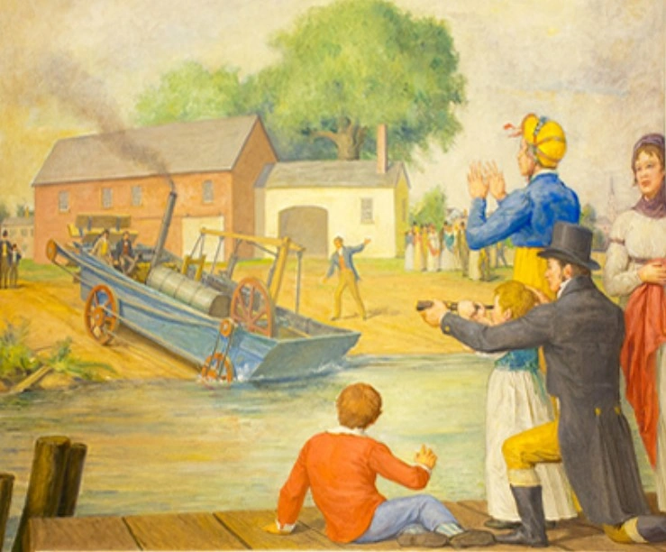 У своїй праці "Супутник молодого інженера", виданому у Філадельфії в 1805 році, Еванс детально зупинився на застосуванні свого двигуна для пароплавів та сухопутних екіпажів. І того ж року він будує плаваючу парову землечерпалку для роботи з поглиблення окремих ділянок гавані міста Філадельфія. Але як доставити громіздкий виріб довжиною 30 футів (9 м) та шириною 12 футів (2,7 м) до місця роботи?