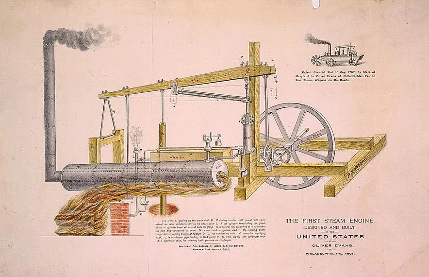 Патент на цю новинку винахідник отримав у 1784 році, а через два роки Еванс намагався запатентувати в Пенсільванії вже перший локомотив, призначений для звичайних доріг. Але був осміяний своїми співвітчизниками як хворий на «парову хворобу» і отримав відмову. Однак у 1787 році йому вдалося отримати такий патент в іншому штаті – Меріленд.