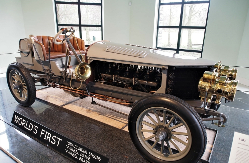 12 лютого 1904 року на лондонському автосалоні у Crystal Palace відбувся показ автомобіля Spyker 60HP, який займає особливе місце в історії цього виду транспорту. Це був перший у світі автомобіль із 6-циліндровим двигуном. Він також був піонером у застосуванні повного приводу на автомобілях із внутрішнім згорянням. І нарешті він уперше в автобудуванні отримав гальма на всіх чотирьох колесах.