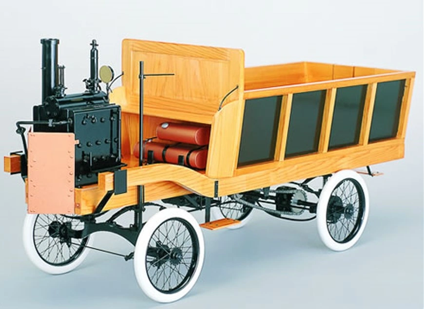 У передній її частині був встановлений паровий двигун з двома вертикальними циліндрами, який розвивав 25 к. с. Позаду нього знаходилася широка лава для водія, який керував машиною за допомогою примітивного важеля. А під сидінням розмістили газові балони - адже традиційної для паромобілів топки, що працює на вугіллі, тут не було.