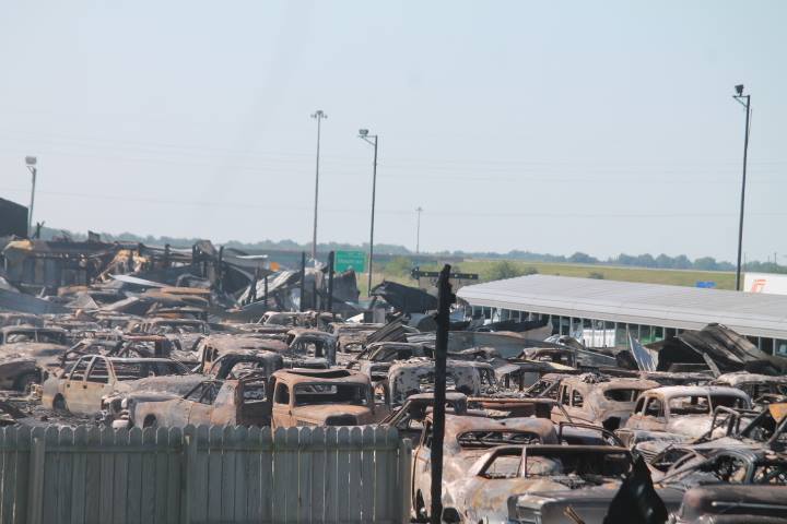 Пожежа перетворила салон раритетних машин у смітник металобрухту