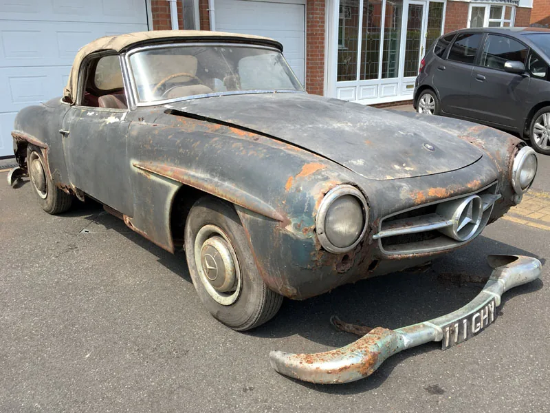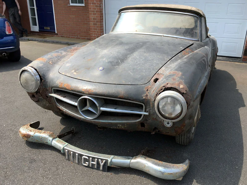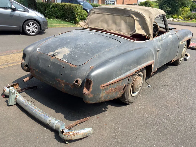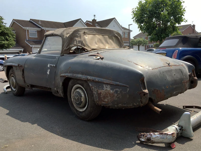 Кто бы мог подумать, что на родине Land Rover, в английском городе Солихалл можно отыскать настоящий автомобильный клад. Свежий тому пример - раритетный родстер Mercedes-Benz 190SL, выпущенный в 1960 году, пролежавший в затопленном гараже кто его знает сколько лет. Довольно символично, что машину разыскал Марк Брайан представитель H & H Classic, интернет-аукциона по продаже классических автомобилей и мотоциклов.
