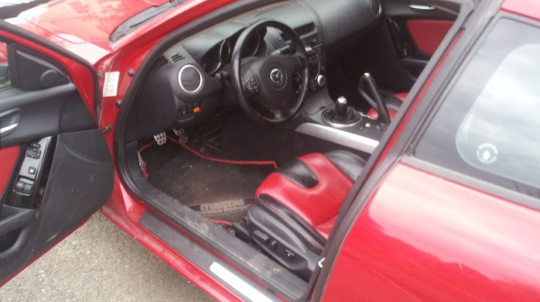 Якщо вірити нинішньому власнику, його Mazda RX-8 здатна розігнатися до 160 км/год. Пробіг машини становить 160 тис. км. В оснащення входять система ABS, кондиціонер, електричні склопідйомники, підсилювач керма, протитуманні фари, центральний замок, легкосплавні диски тощо. За Мазду з французьким серцем хочуть виручити 3,5 тис. євро.