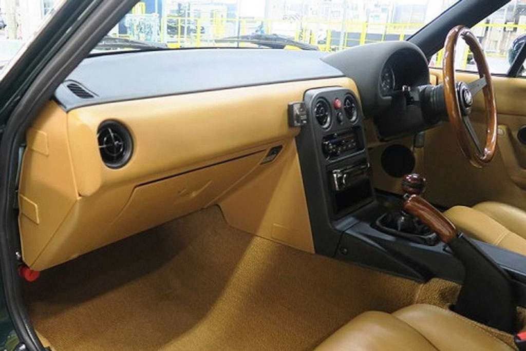 За эту цену Miata получит новую светотехнику, мягкий верх, оригинальные 14-дюймовые диски с шинами Bridgestone, а также новые панели кузова – капот, багажник, двери и крылья. Кроме того, кузов автомобиля будет подготовлен к покраске. Например, автомобиль на фото 1992 года выпуска окрашен в цвет Neo Green, который гармонично сочетается с черной крышей.