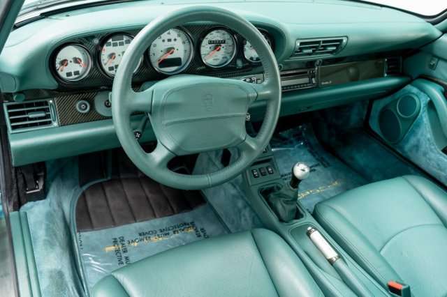 Кроме того, у купе редкая комбинация бирюзового цвета и такой же бирюзовой внутренней отделкой. Комплектация Porsche 911 включает карбоновые вставки в салоне, электропривод и подогрев сидений, люк и CD-чейнджер.