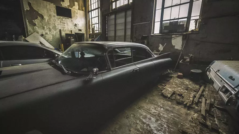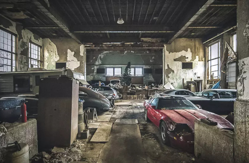 Майстерню при цьому не продали, а просто закрили, залишивши там все обладнання та автомобілі. Загалом кинули гинути близько десятка машин. Серед них — кумедний кабріолет Chrysler PT Cruiser 2006 року, Ford Mustang 1999 року, Cadillac Deville 1960 року, Mercury 1948 року, Chevrolet 210 і хот-род Ford Model A 30-х років. Усі автомобілі перебувають у геть поганому стані. Вони покриті товстим шаром пилу, під яким видно величезні осередки корозії.