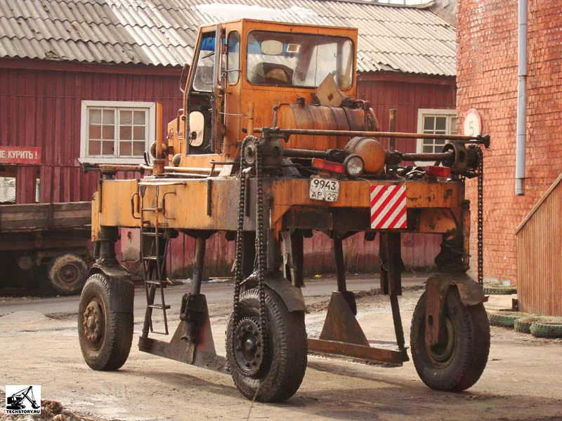 Характерной особенностью автолесовоза является независимая подвеска всех четырех управляемых колёс и бортовые цепные передачи.