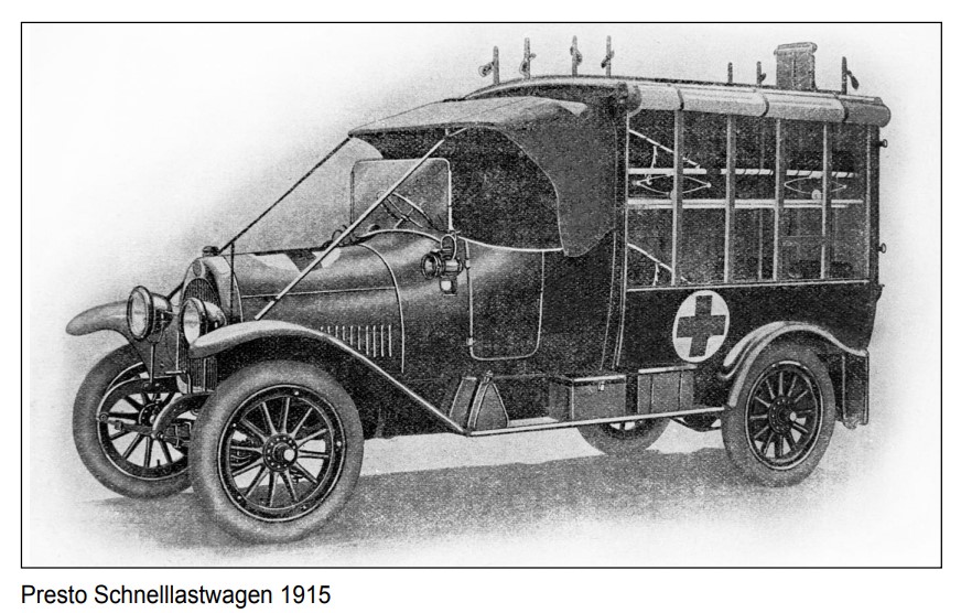 У Першу світову війну фірма Presto почала постачати автомобілі для німецької армії. Здебільшого це були легкові машини, які використовувалися як службові – командирські та штабні. Крім того, для санітарних зробили потужніше 1,5-тонне шасі (10/30 PS). Випускалася також швидкохідна вантажівка на 2 т. За деякими даними, вироблялися й тритонні вантажівки.