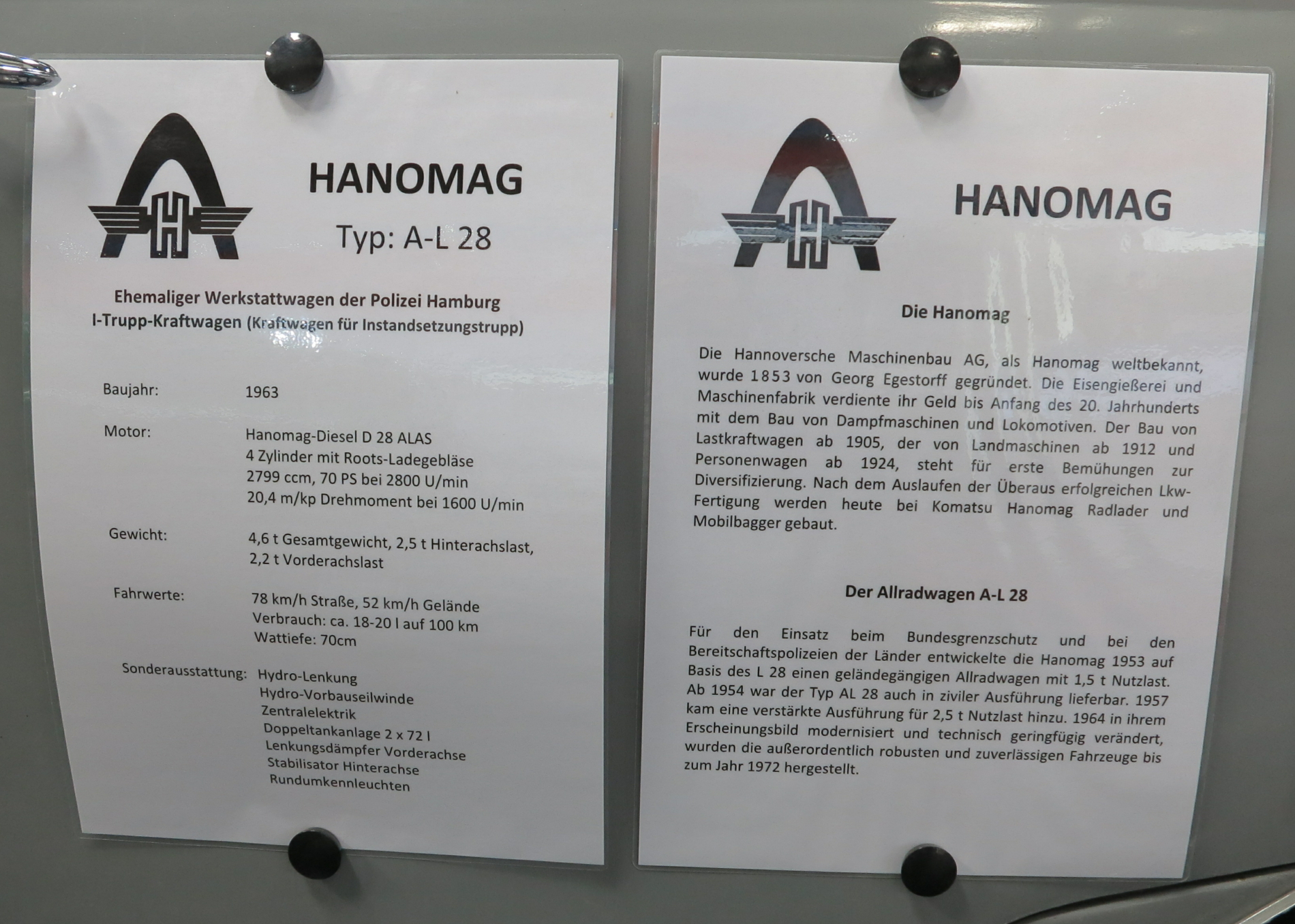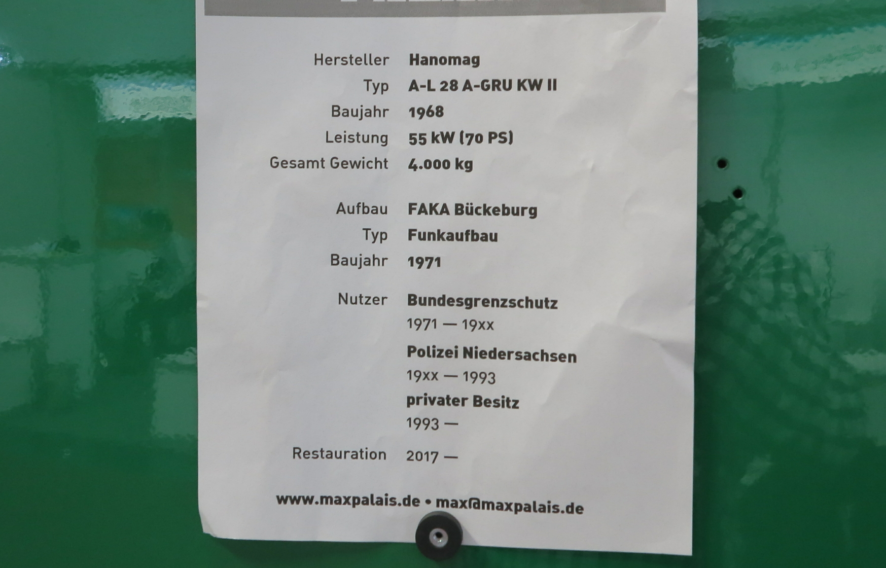 Зі стандартним армійським кузовом-фургоном і кабіною округлої форми. В експозиції клубу любителів Hanomag на автосалоні IAA-2018 у Ганновері. Фото автора