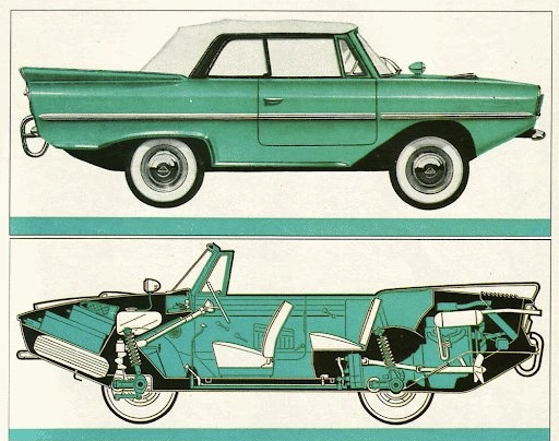 Під заднім бампером розміщувалися два гребних гвинта, які розганяли машину на воді до 7 вузлів на годину (13 км/год). А на суші максимальна швидкість сягала 110 км/год. Кузов був склопластиковий, так що іржа амфібії була нестрашна.