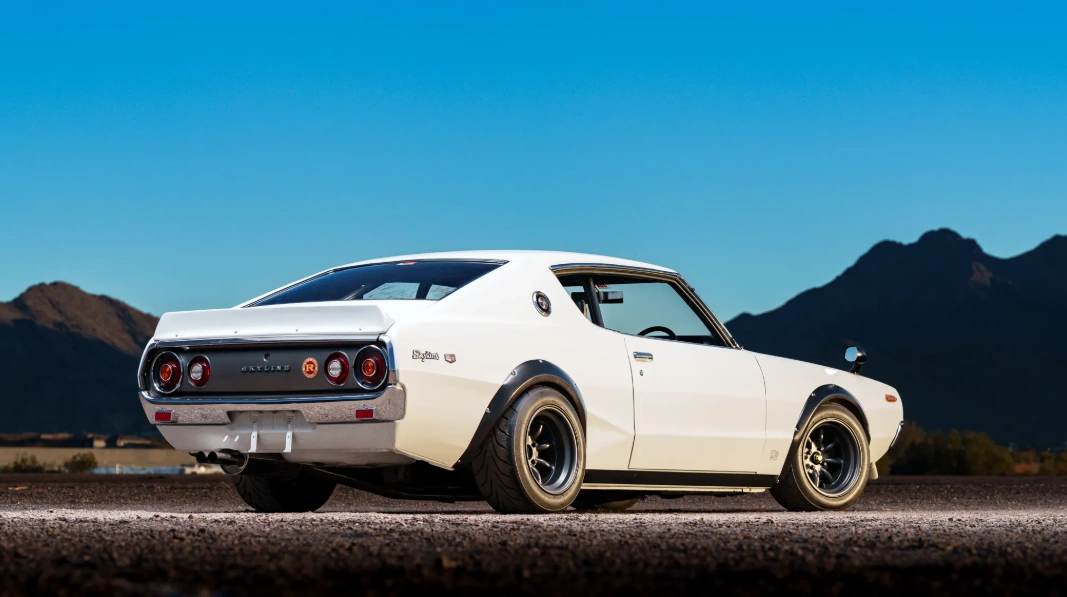 Цьому Nissan Skyline GT-R фахівці замінили оригінальний двигун на 3,5-літровий рядний мотор, який працює у парі з шестиступеневою механічною коробкою передач від Nissan 350Z, доповненою гоночним зчепленням та диференціалом підвищеного тертя. Встановлено вихлопну систему Fujitsubo та покращену підвіску. На момент написання статті максимальна ставка на класичне купе складала 51 тисячу доларів.