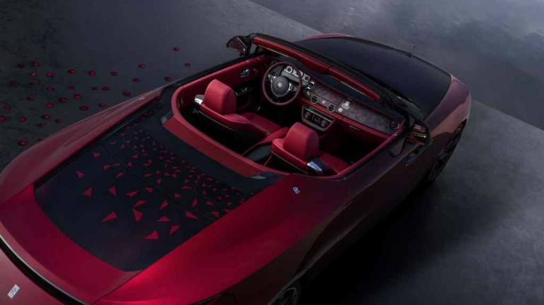 Дизайн авто натхненний французькою трояндою Black Baccara, яка є улюбленою квіткою замовника. Родстер пофарбований в унікальний червоний колір, який змінює відтінок, залежно від освітлення. Rolls-Royce створив цю фарбу, об’єднавши два відтінки червоного – True Love та Mystery.