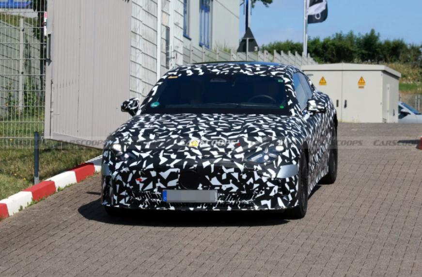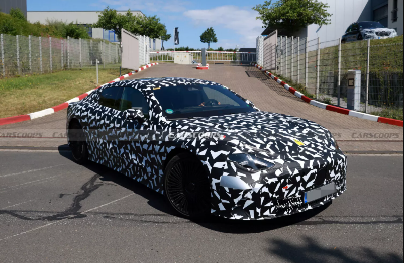 Пасажирська частина передньої панелі прикрита маскуванням. Ймовірно, там буде щось оригінальне, але воно поки що залишається за кадром. Що стосується екстер’єру спортивного седана, то він отримав обтічний кузов з довгим капотом, сильно похилим вітровим склом. Фари мінімалістичні з великими «зірками» всередині. У передній бампер інтегрований великим повітрозабірником. На кормі видно круглі ліхтарі все з тими ж «зірками».