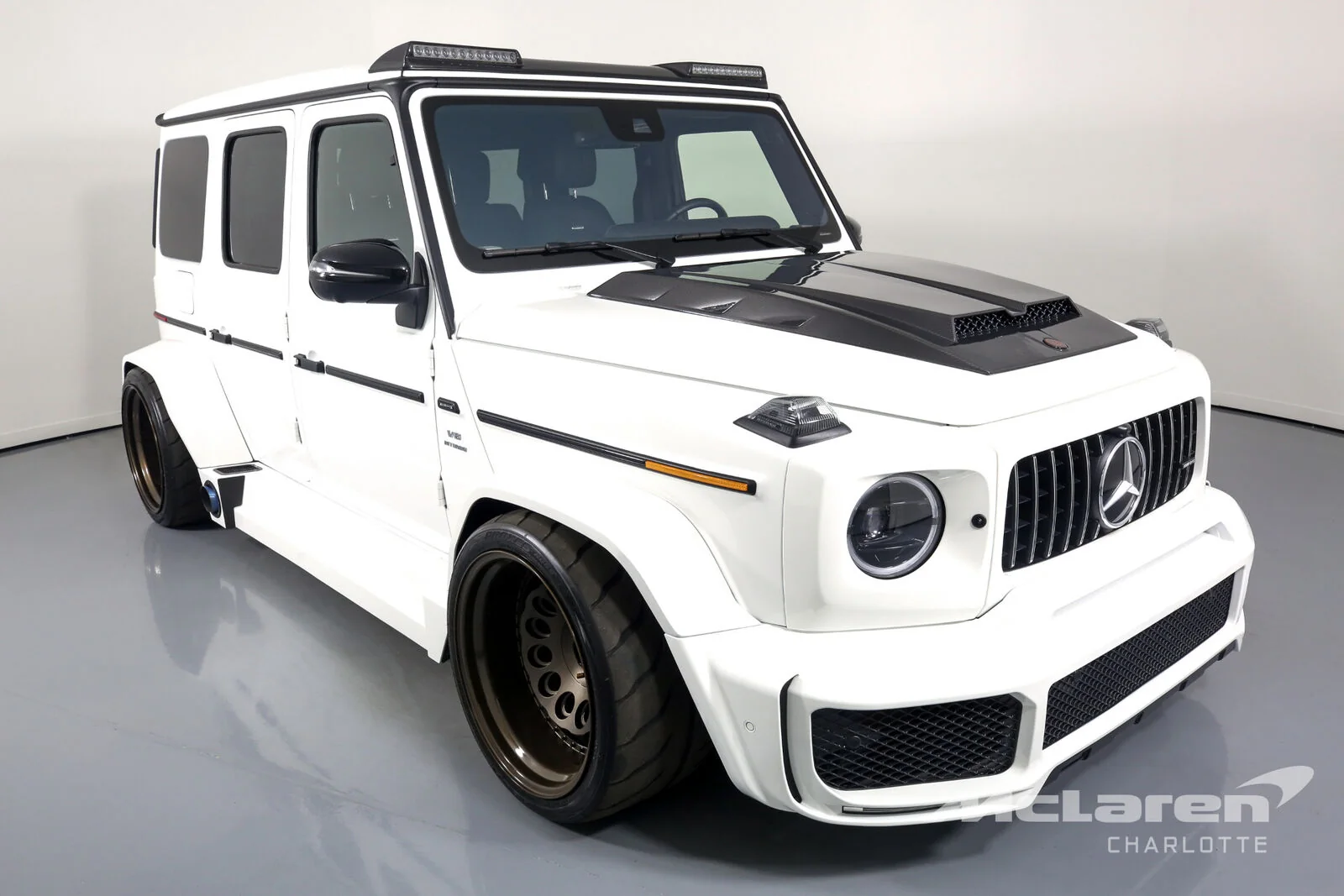 Один из тюнингованных экземпляров культового внедорожника выставили на продажу на eBay. Автомобиль выглядит очень эффектно и сурово. За счет доработки подвески G63 существенно занизили дорожный просвет, доведя его до уровня суперкара. Таким образом машина оказалась бесполезной для бездорожья. Также на автомобиль установили спортивный обвес, который включает модернизированные бамперы, расширители колесных арок и массивные пороги.