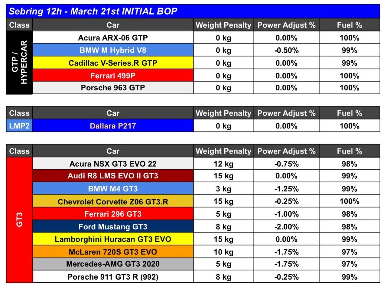 Гонка у Сібрінгу є другим етапом IMSA WeatherTech SportsCar Championship. Це командний івент, де в команду можуть бути заявлені від 2 до 16 пілотів. На стартову решітку одночасно можуть стати до 60 автомобілів різних класів. Допущені автомобілі наступних класів: GTP & HYP, LMP2, GTD.