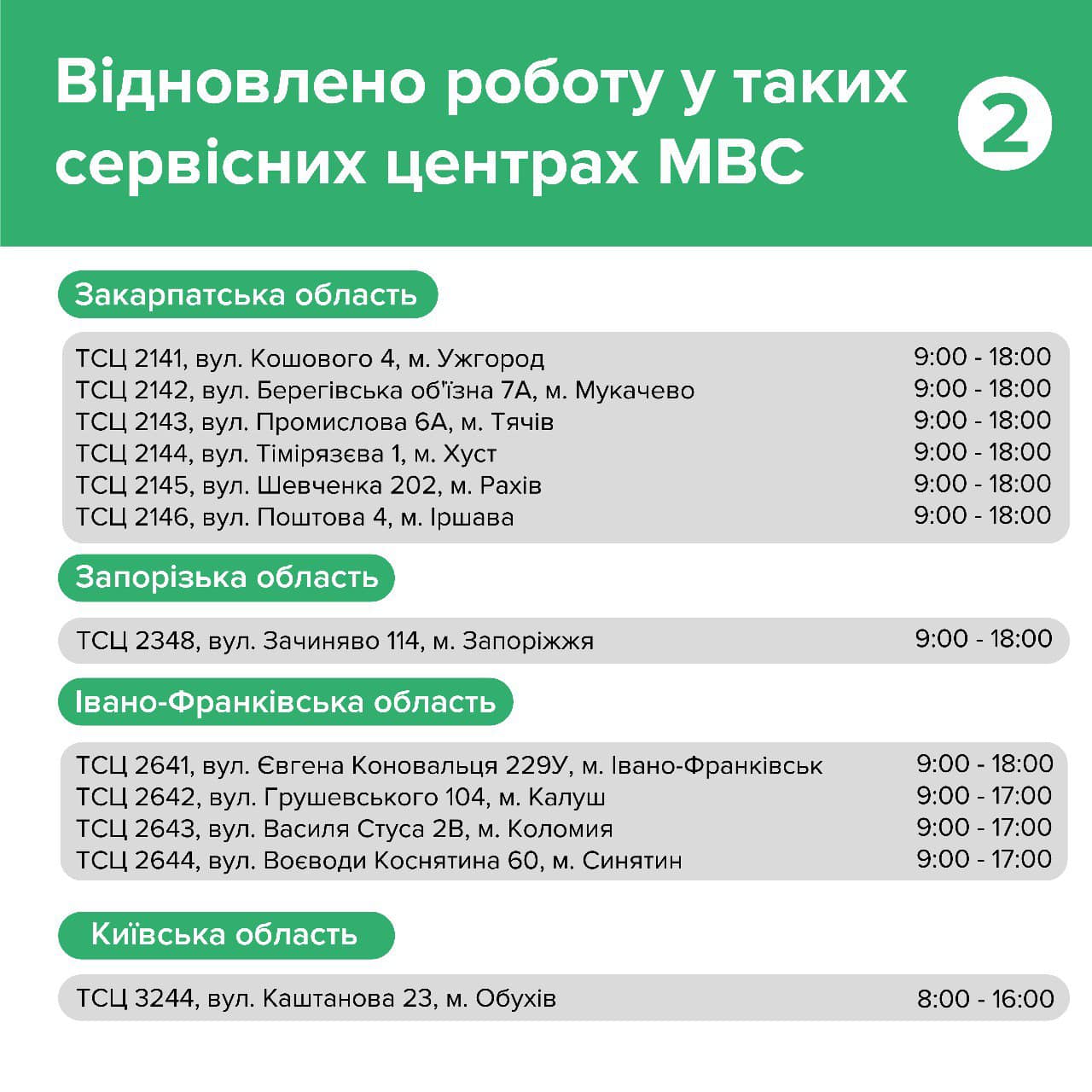 Графік роботи відділень встановлено з 09.00 до 18.00. Однак він може змінюватись залежно від ситуації. Також у відомстві розглядають можливість збільшення робочого годинника. Але лише за умови зміни комендантської години (зараз від діє з 20:00 до 6:00). Про всі зміни буде повідомлено додатково на офіційній сторінці організації у Facebook.