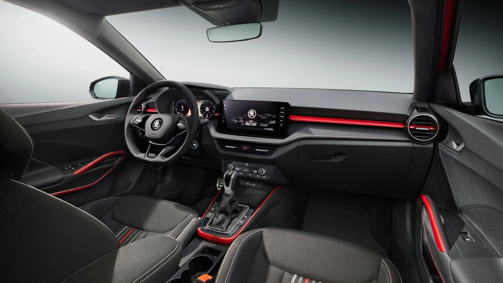 Також можна відзначити наявність слота для бездротової зарядки смартфона, додаткових USB-портів, накладок на педалі з нержавіючої сталі і порогів з написом Fabia. Є підігрів керма і лобового скла. За безпеку водія і пасажирів відповідають дев'ять подушок і широкий список електронних асистентів, зокрема Travel Assist, Front Assist і Maneuver Assist.