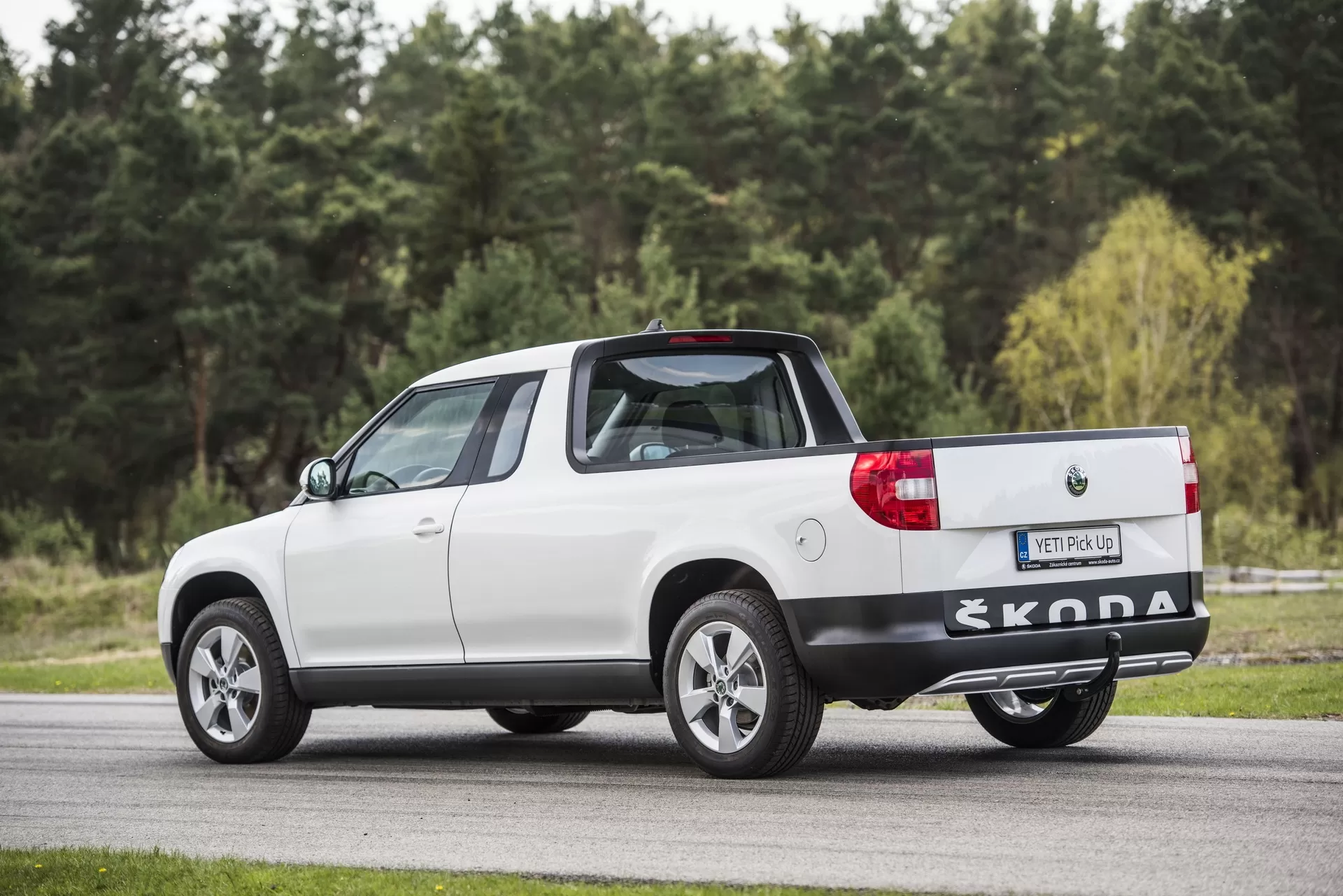 У Yeti Pickup двомісна кабіна, яка закінчується одразу за спинками сидінь. Передні крила та задній відкидний борт розробили спеціально для прототипу. Колісна база розтягнута до 3006 мм, що на 428 мм більше ніж у базового кросовера. Це дозволило встановити вантажну платформу довжиною 1936 мм, шириною 1170 мм та глибиною 625 мм. Під капотом у пікапа 2,0-літровий дизельний мотор з турбонаддувом потужністю 168 к.с., який приводить усі чотири колеса.