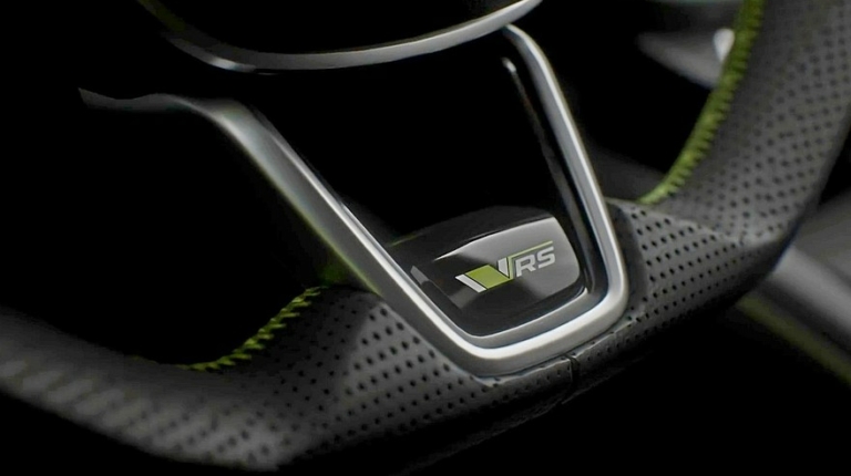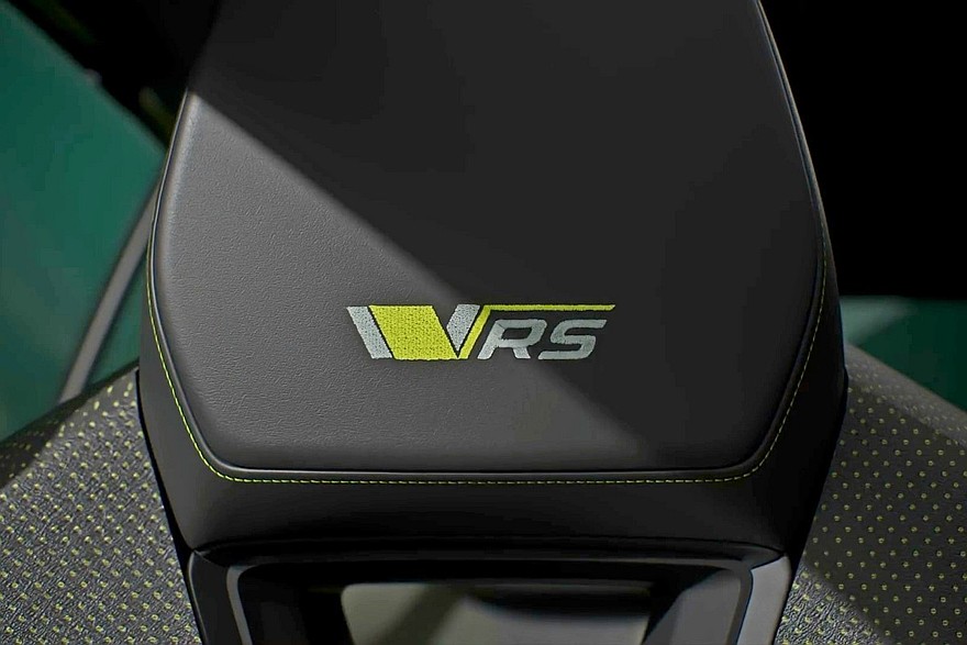 На тізерних зображеннях показали не тільки кузов, а й салон майбутньої електричної новинки від Skoda. Тут можна відзначити наявність спортивних сидінь з розвиненою бічною підтримкою і логотипами RS, а також D-образного рульового колеса. Що стосується оздоблення салону, то в ньому використана перфорована шкіра з яскраво-салатовим акцентами.