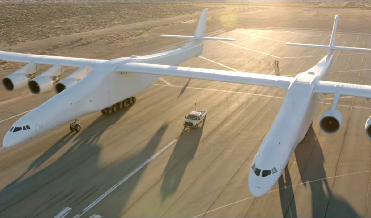 Эта машина, впервые представленная в мае 2017 года, имеет два фюзеляжа и на днях – 9 января 2019 года сделала первый разбег по взлетной полосе. Правда, самолет так и не поднялся в воздух, а только разогнался по бетонке до 218 км/ч. Однако первый полет обещают уже в ближайшем будущем.