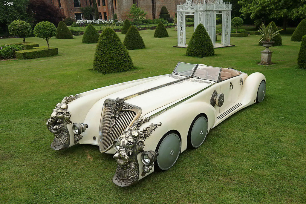 Полностью функциональный автомобиль был построен с использованием узлов и агрегатов от пожарного Land Rover. Под капотом располагается двигатель Rover V8. Длина машины составляет внушительные 6,7 метра, а ширине – 2,74 метра. Четырехдверный кабриолет цвета слоновой кости украшен декоративными фигурками из индийской мифологии, которые создал художник-постановщик фильма Кэрол Спир. Салон отделан бежевой кожей и оформлен в том же стиле, что и интерьер автомобиля. Диаметр каждого из шести колес равен 72 см. Гидропневмоподвеска позволяет менять клиренс автомобиля.