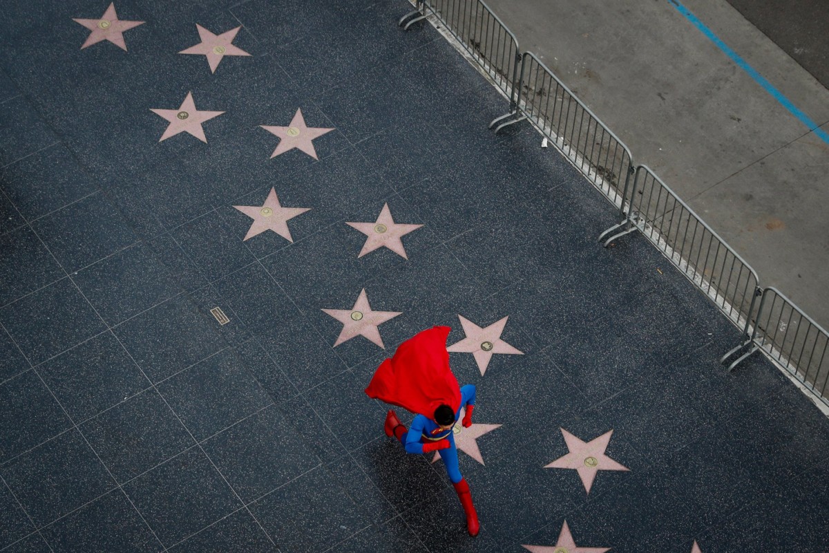 На этом фото, хоть и нет автомобилей, зато есть наш соотечественник, который попал в 100 лучших фотографий TIME 2017 года. Украинец Анатолий Штапенко, одетый в костюм Супермена, шагает по Голливудской аллее славы, чтобы впечатлить туристов. Фото: Jae C. Hong—AP/Shutterstock
