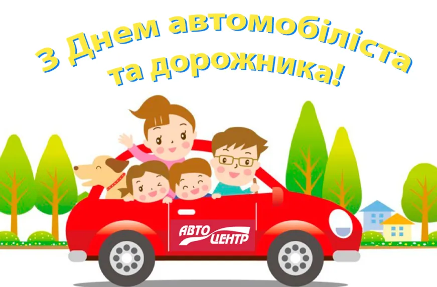 Колектив «Автоцентру» вітає всіх, хто вже став власником «чотирьох коліс», а також тих, що тільки збирається приєднатися до автомобільного братства, з цим чудовим святом і бажає «ні цвяха, ні жезла», дешевого палива, доступних запчастин та автосервісу, надійних машин та всіх благ!