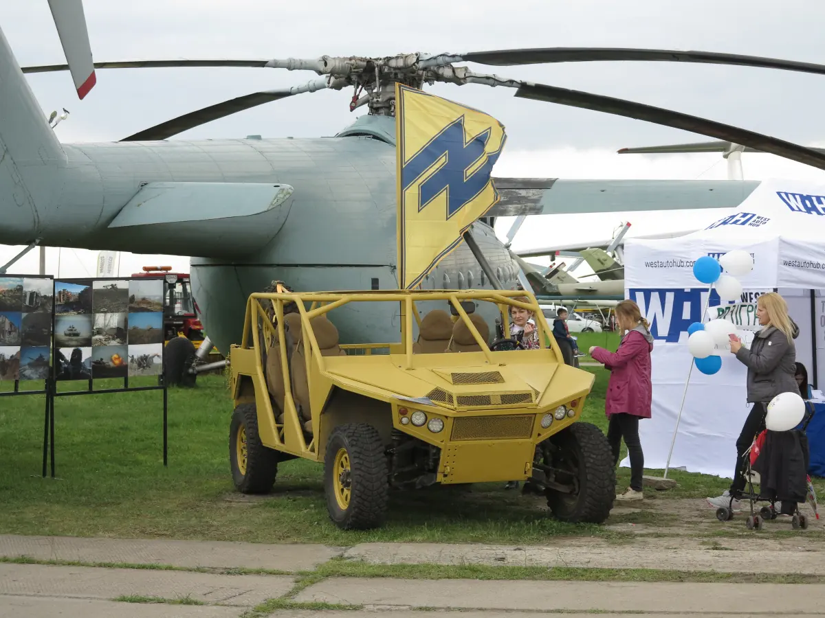 В Киеве, с 9 по 12 мая, на территории Музея Авиации проходит юбилейный, 10-й по счету крупнейший в Украине Технический фестиваль OldCarLand. Здесь помимо ретроавтомобилей на этот раз обширно представлена военная техника, причем не только прошлых лет, но и перспективная. И наглядный тому пример – прототип многофункционального автомобиля багги, разработанная инженерной группой «Азов».