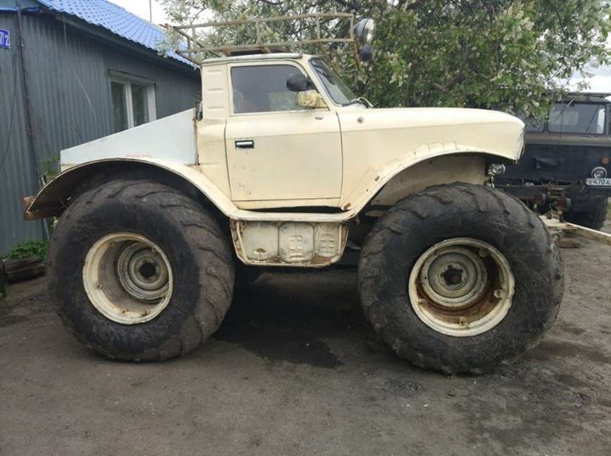 Машина получила полный привод и как подобает настоящему бигфуту – огромные колеса, которые в данном случае взяли у трактора. Машина получилась намного эффектнее, чем недавно описанный нами бигфут, также построенный на базе ИЖ.