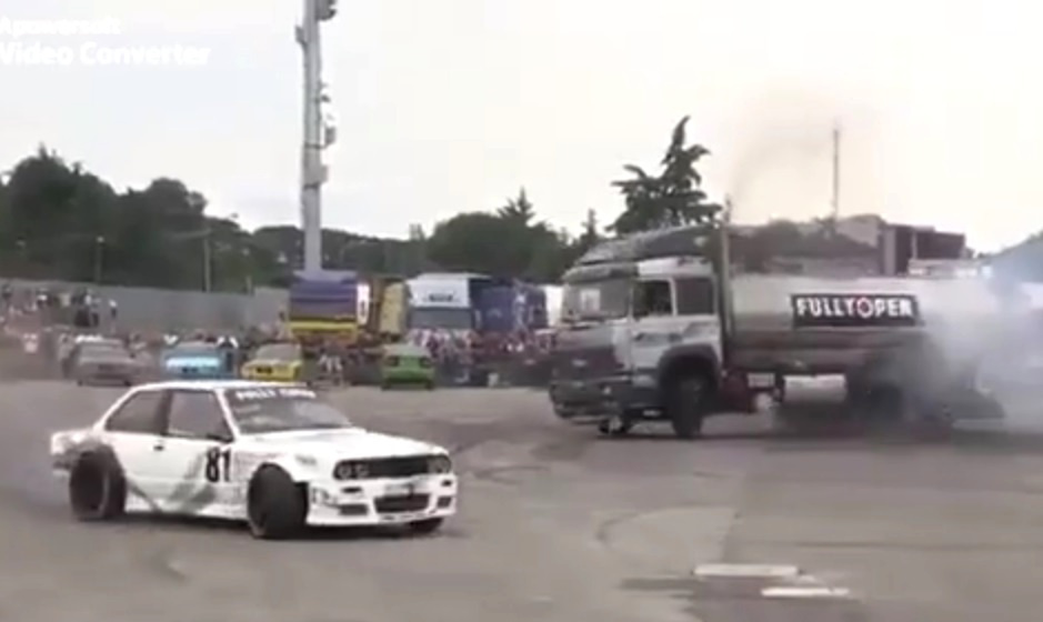 BMW Е30 против бензовоза – нереальный дрифт (видео)