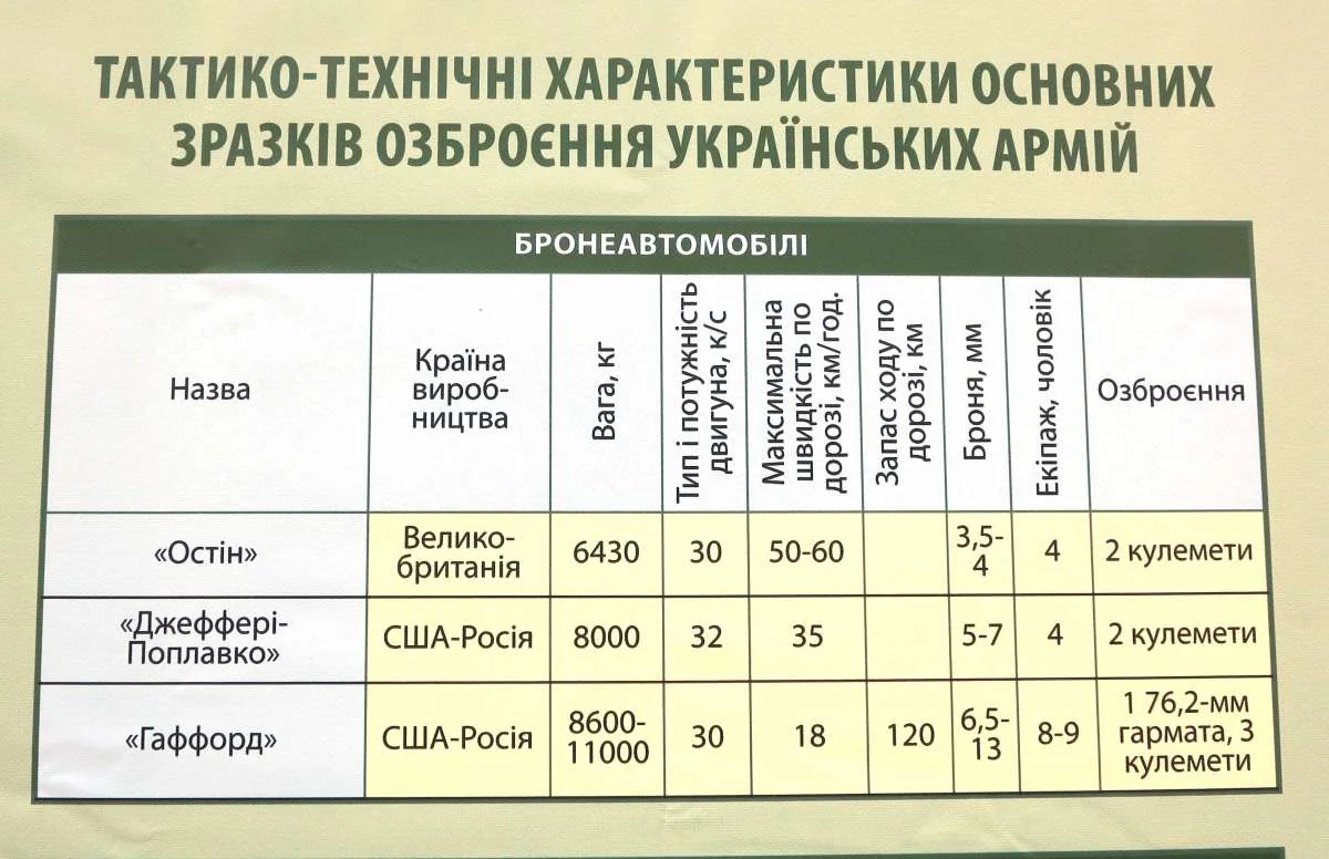 Если говорить о броневиках, то в то время в украинкой армии были машины трех типов – «Остин» (Великобритания), а также «Джеффери-Поплавко» и «Гаффорд» (США-Россия). На всех устанавливались двигатели примерной одинаковой мощности – около 30 л.с.