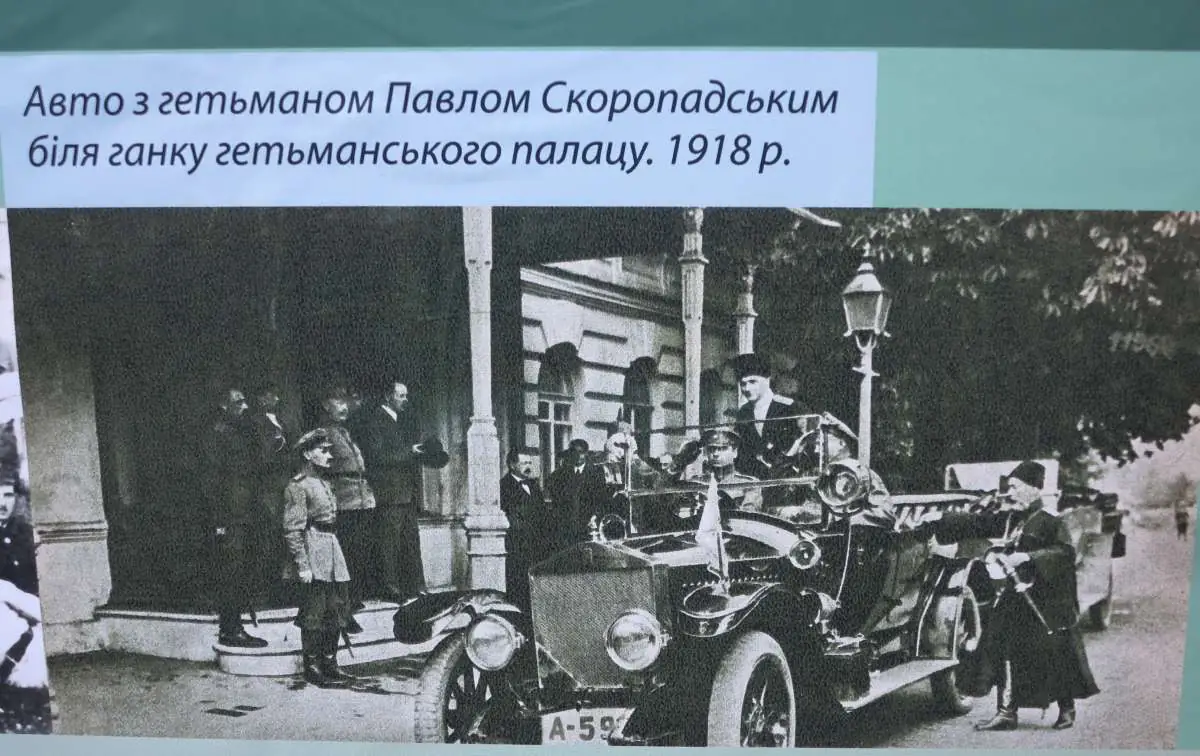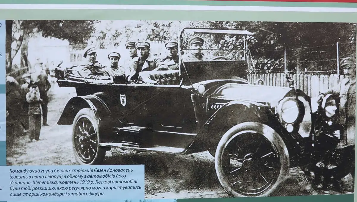Что же касается легковых автомобилей, то они были на то время настоящей роскошью и пользовались ими в основном старшие командиры и штабные офицеры. Особый интерес представляет фотография с гетьманом Павлом Скоропадским и его служебным автомобилем.