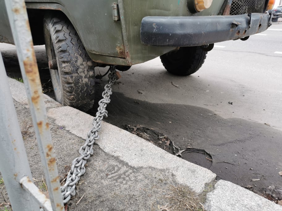 Сегодня в Украине угоняют автомобили какие угодно и где угодно. Причем мишенью злоумышленников могут стать не только дорогие машины, но и отслуживший свое транспорт, место которому в музее. И за примерами далеко ходить не нужно. Свою старенькую УАЗ Буханку столичный владелец буквально приковал к столбику железной ограды, вернее, посадил на цепь.