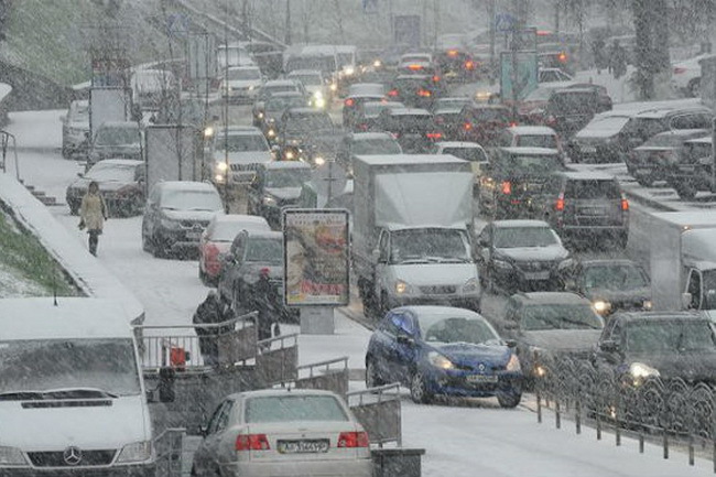 Большинство улиц непригодны для движения легкового транспорта. Магистральные дороги позволяют лишь медленно движение, периодически замирающее до нулевой скорости из-за отдельных буксующих автомобилей. Правила дорожного движения выполняются лишь частично, во многом порядок на дорогах соблюдается благодаря выдержке и сознательности немногих водителей, которых крайняя необходимость вывела на дороги. К примеру, по каждому из направлений проспекта Победы с утра машины ехали в обоих направлениях. Одиночные машины периодически скапливаются в колонны, останавливающиеся из-за забуксовавших машин. Иногда беспомощны даже серьезные внедорожники: их блокирует не снег, а забуксовавшие и остановившиеся впереди и с боков машины. К счастью, сегодня нерабочий день, и большинство киевлян могут позволить себе оставаться дома.