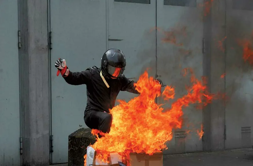 Яркое огненное шоу устроили представители фирмы Uvex, занимающейся изготовлением специальной одежды для авто- и мотогонок. Отважный человек (на самом деле он оказался профессиональным каскадером), одетый в специальный жароустойчивый гоночный комбинезон и шлем Uvex, на практике продемонстрировал, что композитный материал Nomexо не боится высоких температур. | |