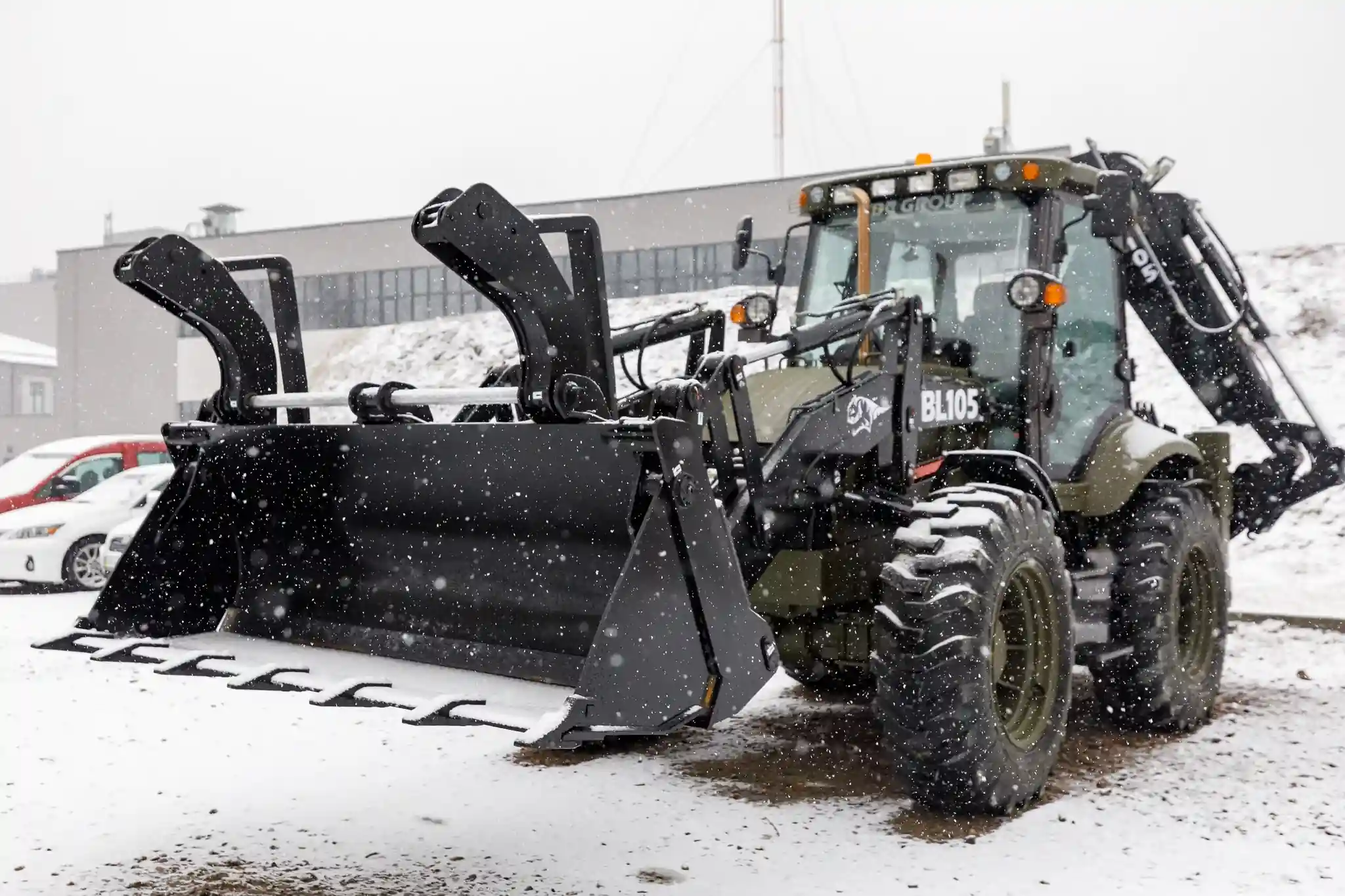Цими днями перший екскаватор-навантажувач уже був підготовлений для відправки до місця проведення робіт. Це модель BL105, яка зібрана вітчизняною компанією TDC. Машина оснащена турбодизельним двигуном Yuchai робочим об'ємом 4,8 л та потужністю 105 к. с. З ним у парі працює КП з чотирма передачами переднього ходу та чотирма заднього. Задні керовані колеса дозволяють пересуватися "крабом" (боком). А загалом радіус розвороту становить 4066 мм. Споряджена маса дорівнює 10 600 кг.