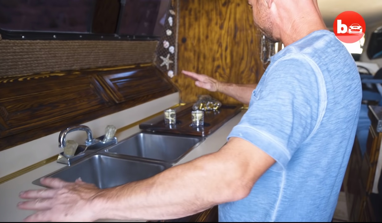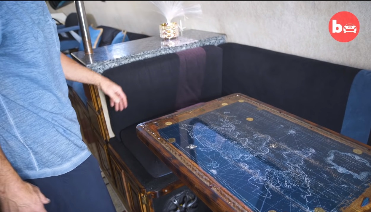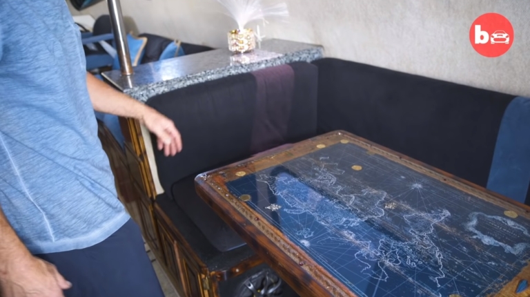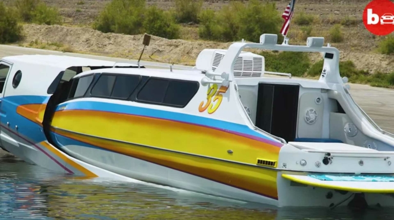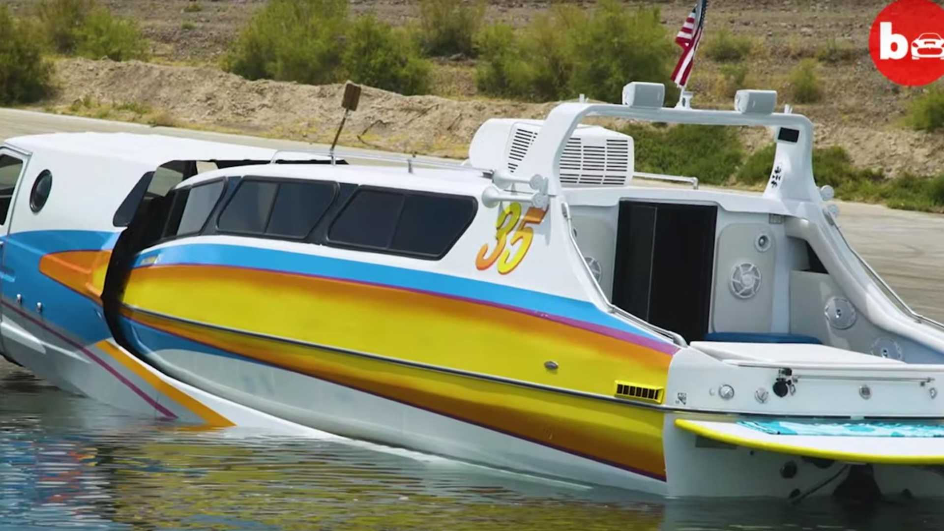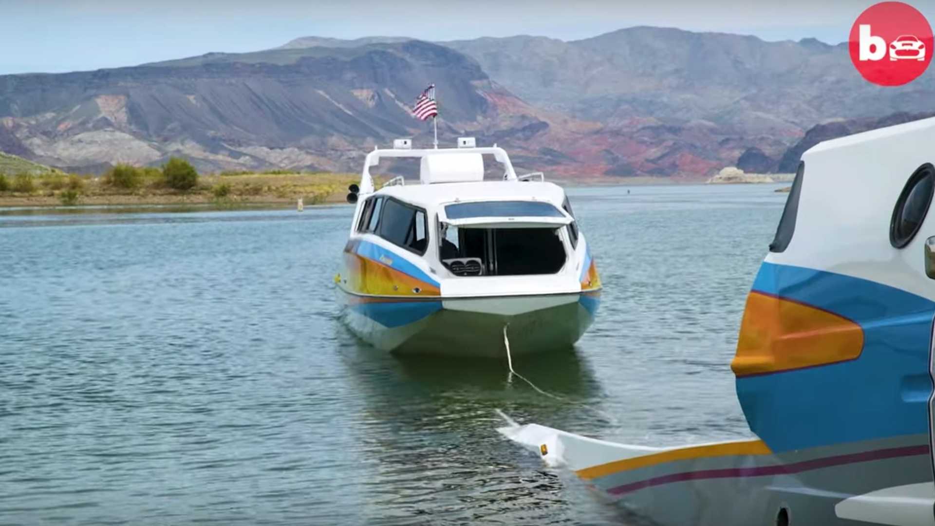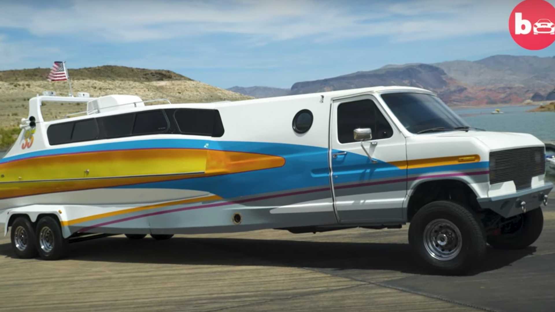 Однак найцікавіше в цьому транспортному засобі те, що він може трансформуватися в 8,5-метровий катер. Для цього частина кузова кемпера зроблена знімною. Великою мірою це майстерно вбудований човен, який заїжджає на шасі як на автовоз.