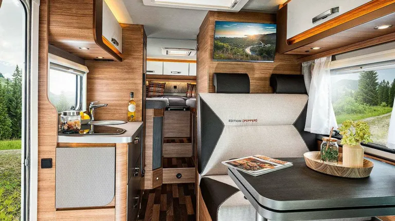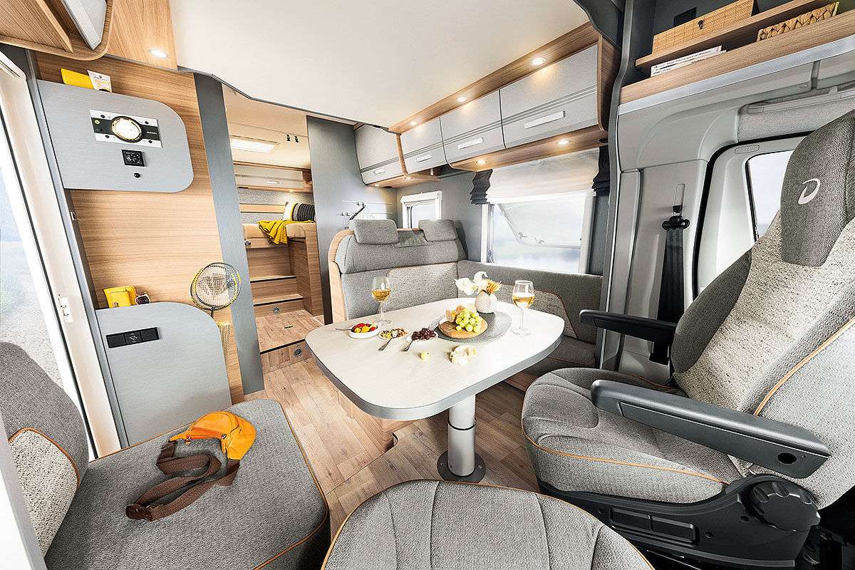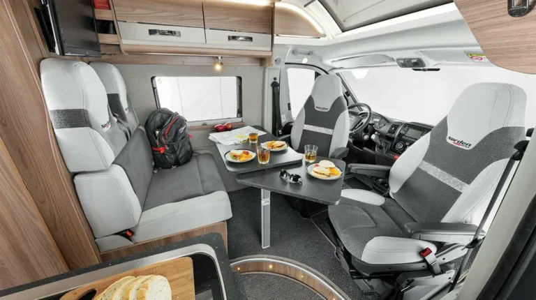 Компания Dethleffs демонстрирует кемпер Trend Edition с богатым серийным оснащением. Это три модели на выбор – все с L-образной группой сидений, темпоматом, панорамными окнами, боковой дверью шириной 70 см. Внутри есть все необходимое. Цена – от 48 999 евро.