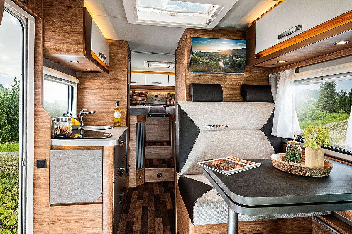К 2020-му модельному компания Winsberg презентует обновленные модели CaraCompact и Edition Pepper. Здесь крыша с интегрированной теплоизоляцией, а cзади установлен подвесной бампер. Также были внесены некоторые улучшения в интерьер. Теперь можно заказать газовую плиту и большое панорамное окно в крыше. Модель 600 MF с «французской кроватью» заменит 600 MG. Кровати в модели 600 МEG (на фото) теперь длиной более двух метров. Цены – от 51 990 евро.