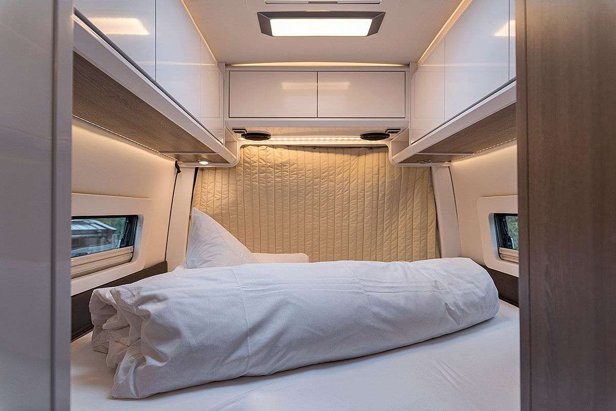 Слева и справа от нее – проходы шириной 40 сантиметров, а перед ними шикарная ванная комната, которая отделена раздвижными дверями. Шасси SLC с тандемной, третьей осью. Мотор от Mercedes-Benz Sprinter мощностью 177 л.с. Цена – от 115 990 евро.