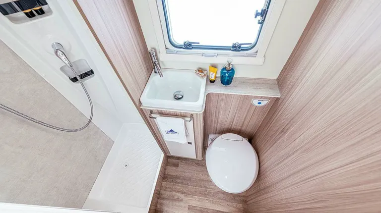 Другая модель T 748 G – также с кроватью Queensbett – имеет длину 7,41 м и стоит от 56 790 евро. Туалет и душевая кабина здесь отделены друг от друга.