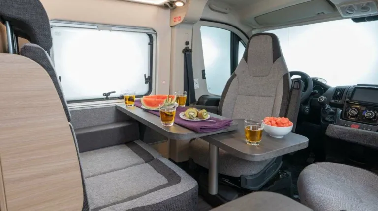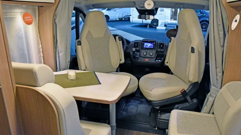В 2020 году Swift также выводит на рынок кемпер-вен модели 599 FB, который создан на базе Fiat Ducato. Здесь классическая компоновка: за раздвижной дверью находится двухместный диван и два поворотных кресла – водительское и пассажирское.