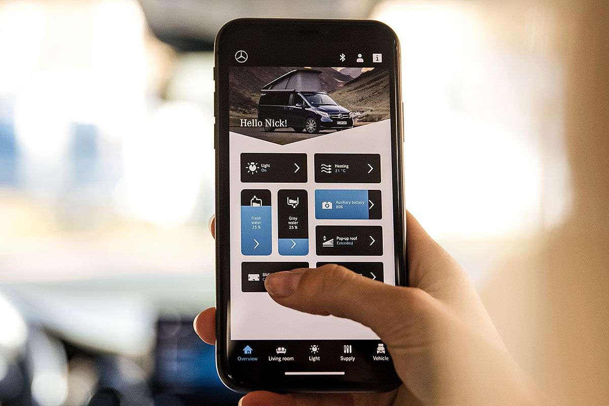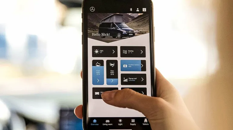 А вот система MBAC, которая серийно устанавливается на все заказанные с конца 2019 года, позволяет централизованно управлять функциями жилого модуля – отоплением, освещением, кондиционером… Управление возможно как с помощью тачпад, MBUX дисплея или мобильного телефона.